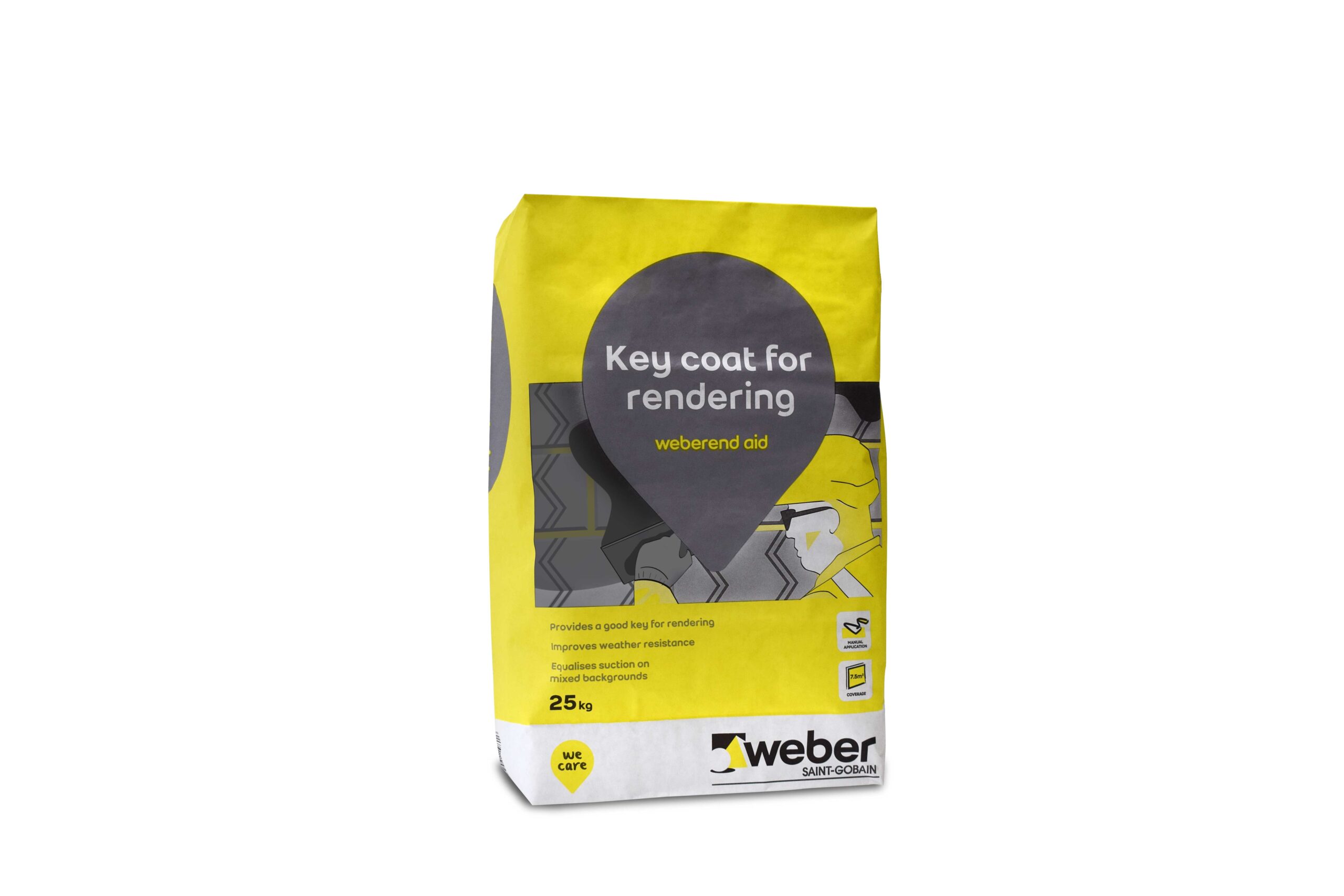 Weberend Aid is a Polymer-modified sand and cement stipple render, used as preparatory key coat before the application of render. Includes an integral bonding agent so that it requires only the addition of clean water on site