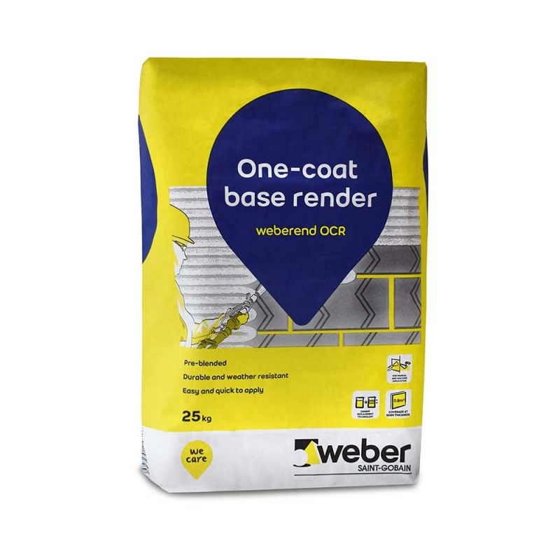 Weberend OCR is a pump or hand applied basecoat render for use in conjunction with Weber decorative finishes. Weberend OCR is applied in one coat, avoiding the drying time associated with multi-coat render systems